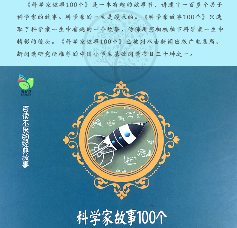 《科学家故事100个》已被列入由新闻出版广电总局、新阅读研究所推荐的中国小学生基础阅读书目三十种之一。